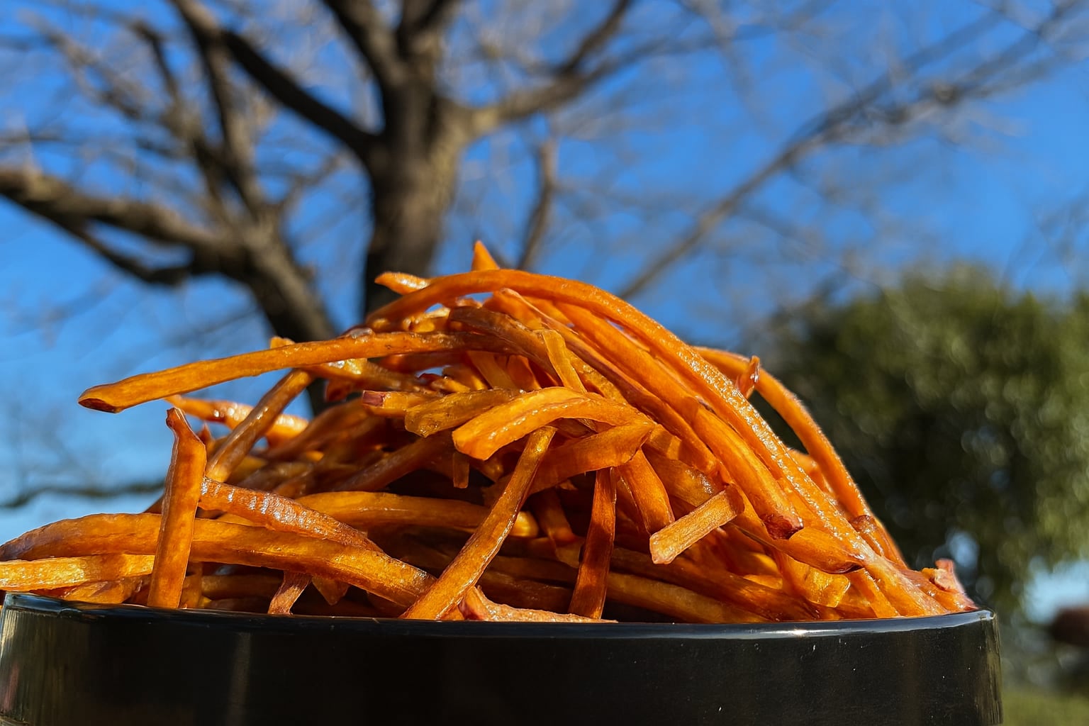 米油でカリッと揚げた、風味豊かな芋けんぴです。